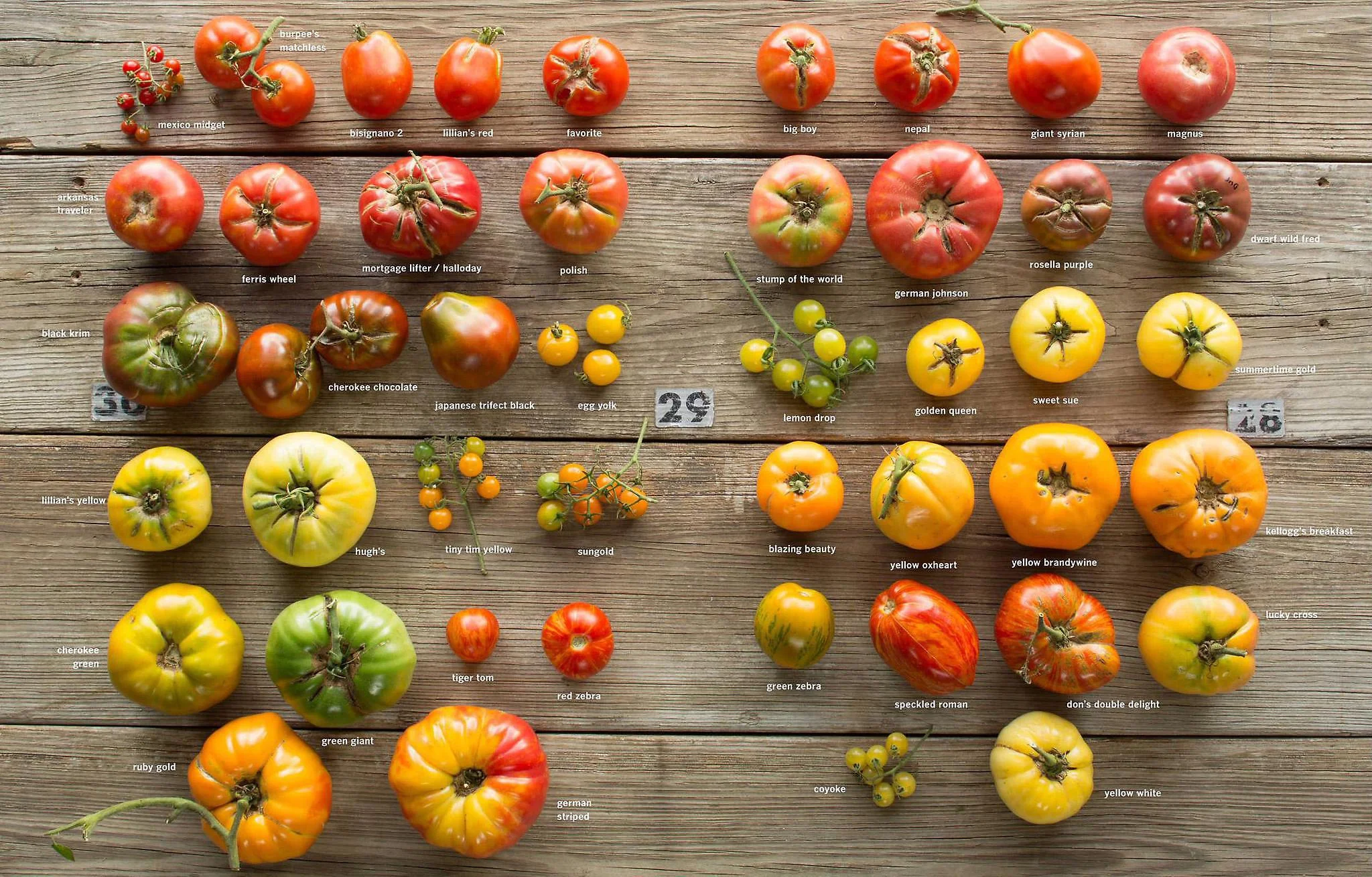 Hundreds of popular hybrid and heirloom tomato varieties are listed by several groupings